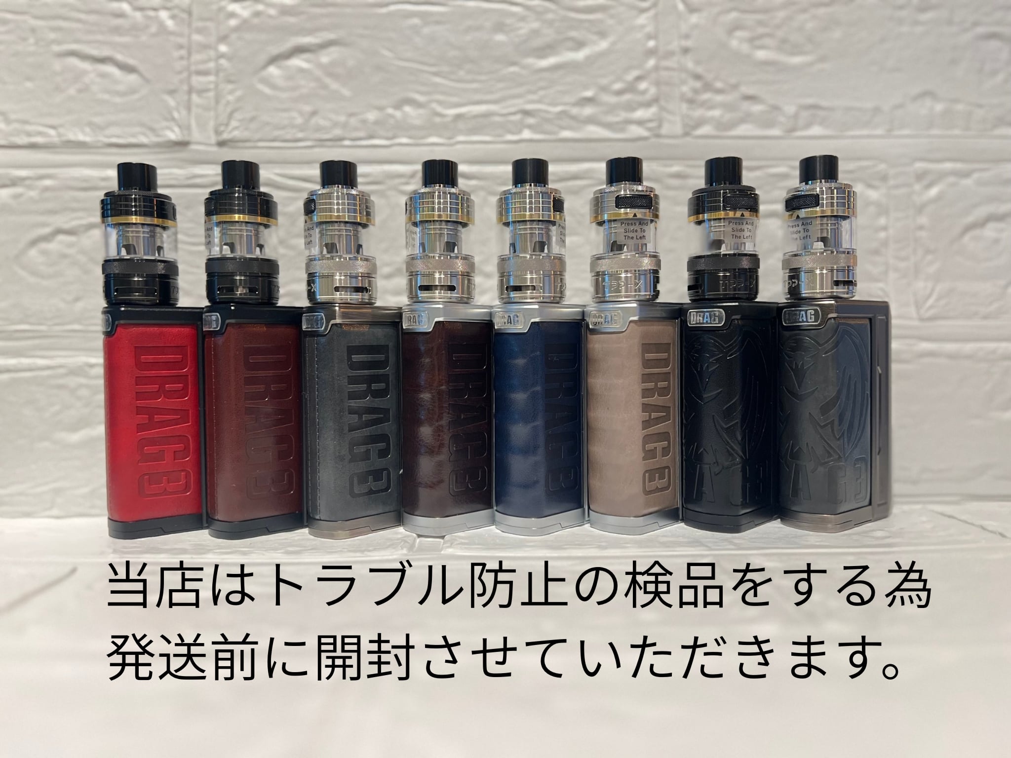 DRAG 3 TPP-X KITは、スタイリッシュでパワフルなTank Modとして知られ、高級レザー、繊細な金属、ハードな幾何学的ラインとブラッシュ仕上げのパターンに加え、絶妙なパターンと独自のシンボル「DRAG」が刻み込まれています。
